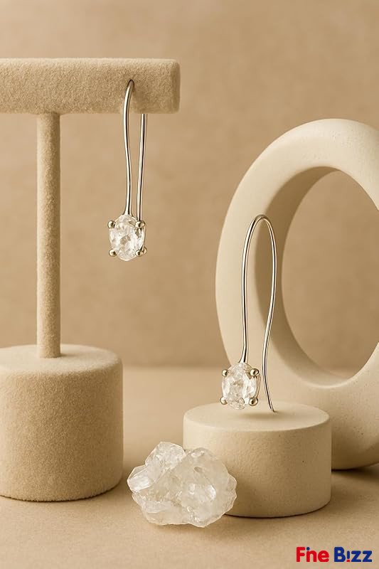 Elegant 925 Sterling Silver Raw Herkimer Diamond Earrings