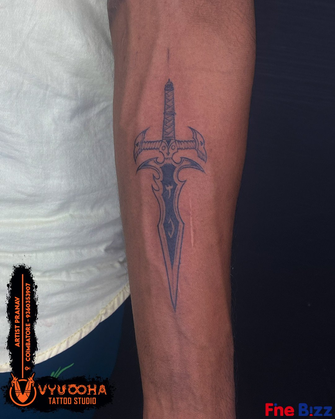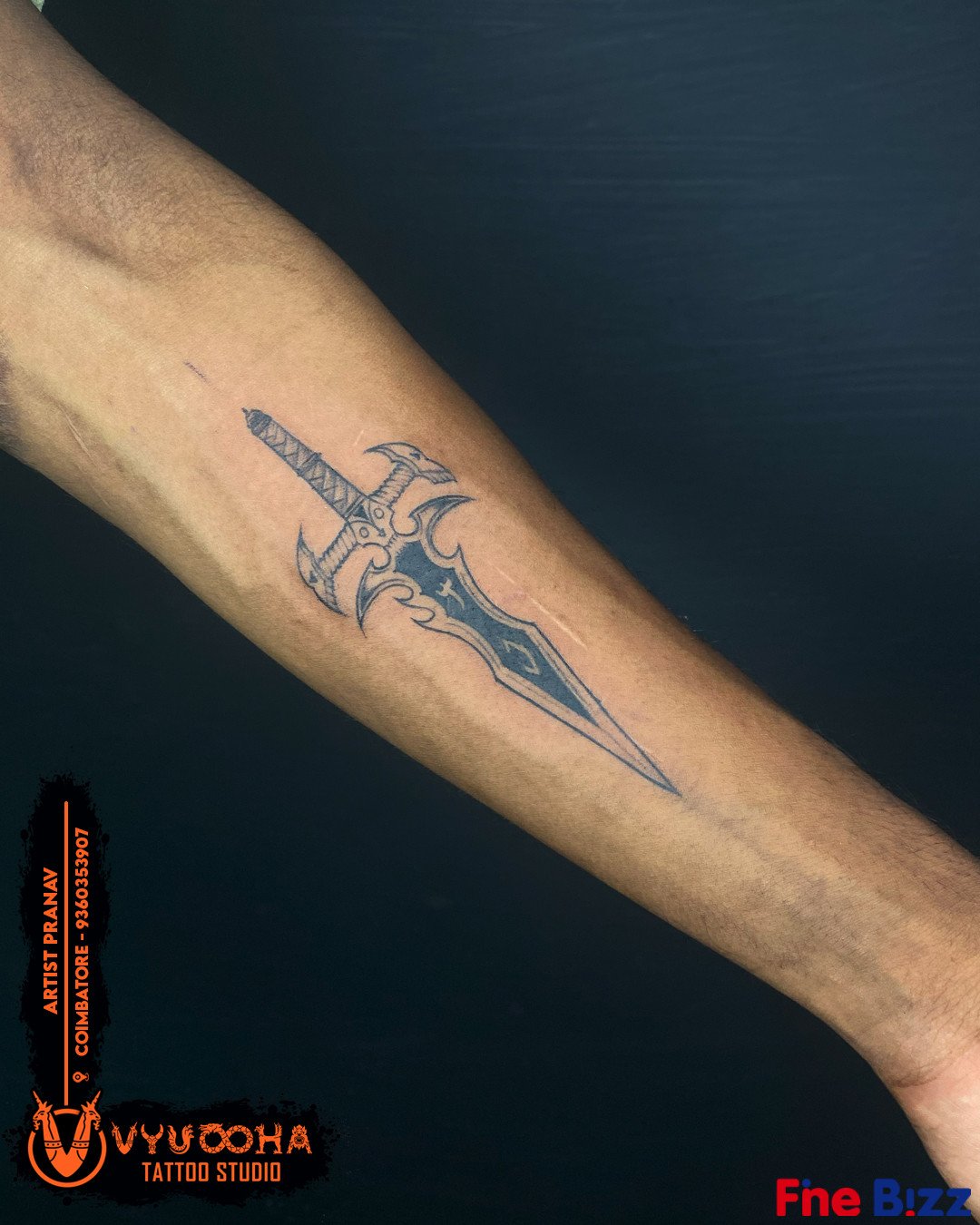 Sword Tattoo Design – Precision Line Work by Vyuooha Tattoo Studio, Coimbatore