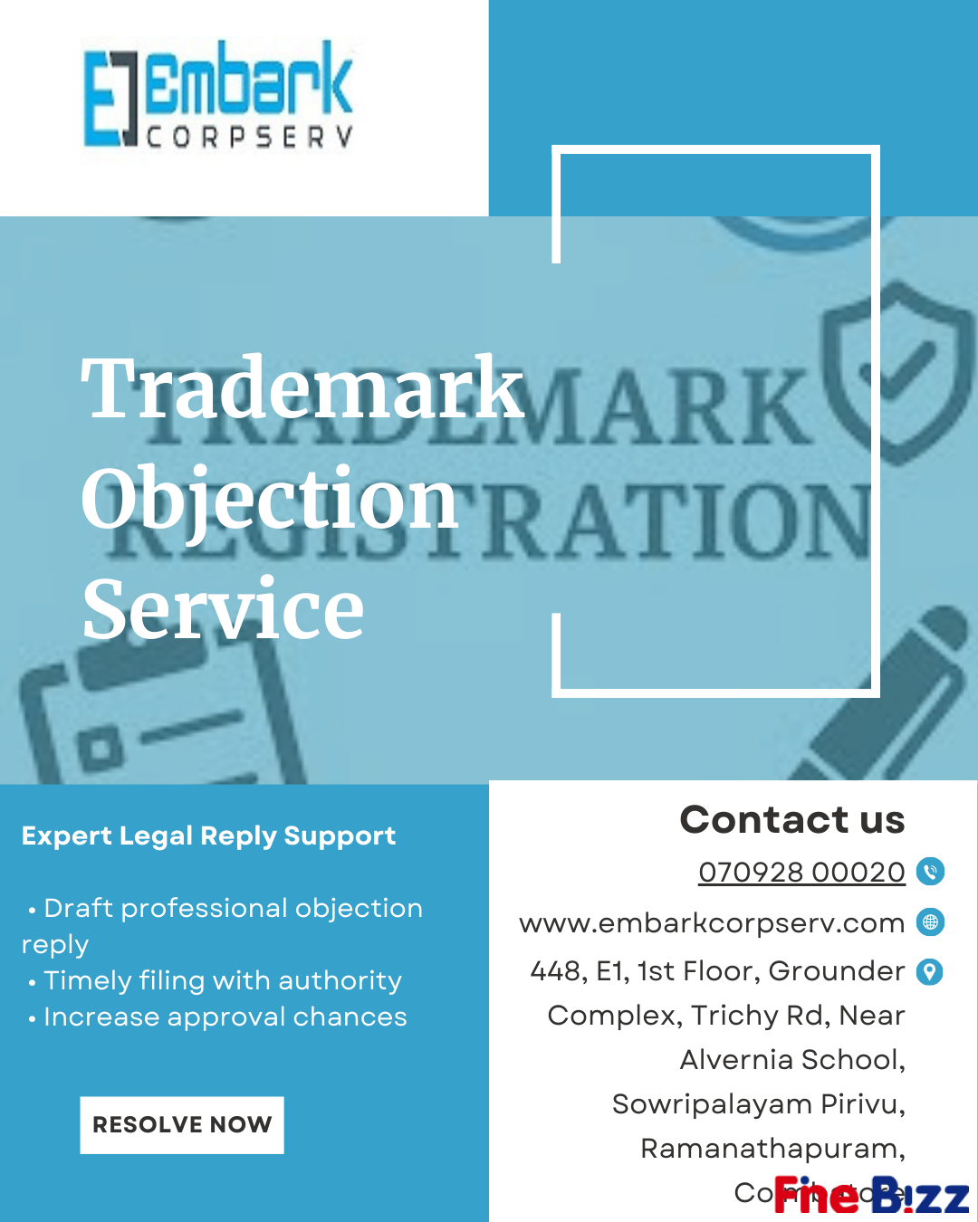 Embark Corpserv offers professional Intellectual Property (IPR) registration and legal compliance services in Coimbatore for startups, entrepreneurs, and established companies. Protect your brand, logo, product design, and innovations with expert registration and compliance support from our experien...